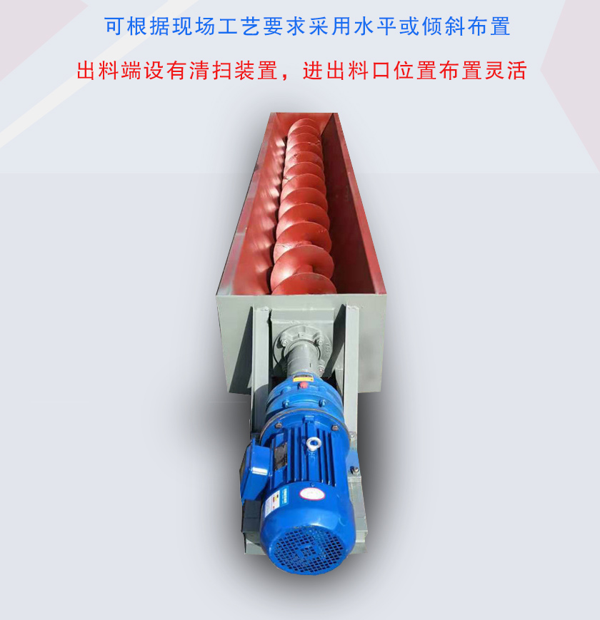 煤粉螺旋輸送機是由驅動裝置、中間軸承、螺旋軸、螺旋機本體、螺旋葉片、頭節、中間節、尾節、進、出料裝置等部件組成。