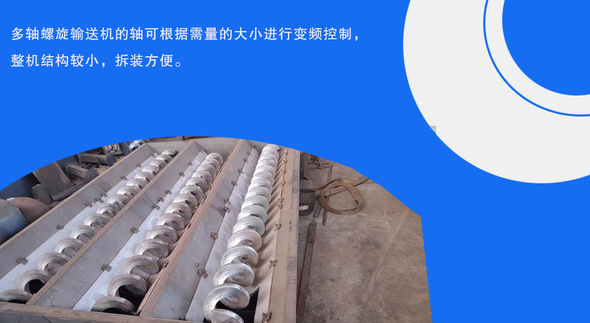 4、多軸螺旋輸送機的軸可根據(jù)需量的大小進行變頻控制,整機結(jié)構(gòu)較小,拆裝方便。